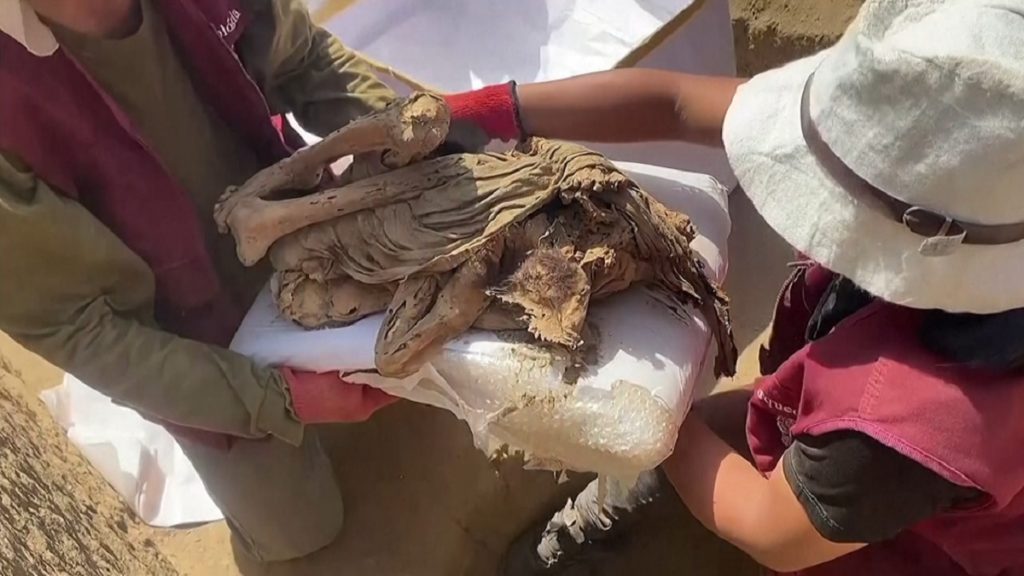 হাজার বছরের পুরোনো একটি মমির সন্ধান মিলেছে লাতিন আমেরিকার দেশ পেরুতে। সম্প্রতি দেশটির রাজধানী লিমার কাছে কাজামারকুইলা প্রত্নতাত্ত্বিক ভবনে খুঁজে পাওয়া যায় মমিটি। খবর রয়টার্সের।