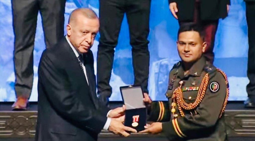 তুরস্কে ভূমিকম্প পরবর্তী উদ্ধারকাজ পরিচালনাকারী বাংলাদেশ দলকে মানবিক সহায়তার অনন্য দৃষ্টান্ত স্থাপনের স্বীকৃতিস্বরূপ তুরস্ক সরকারের পক্ষ থেকে বিশেষ সম্মাননা প্রদান করেছেন তুরস্কের প্রেসিডেন্ট রিসেপ তাইয়েপ এরদোগান।