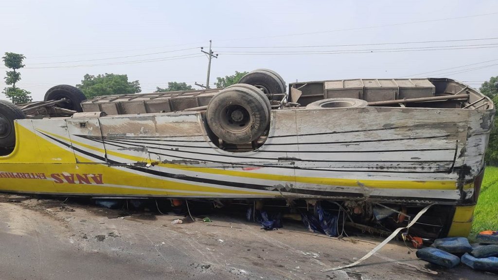 জয়পুরহাট সদর থানার ওসি সিরাজুল ইসলাম ঘটনার সত্যতা নিশ্চিত করে জানান, ঈদের ছুটি শেষে ‘আনাছ পরিবহন’ নামের বাসটি যাত্রী নিয়ে ঢাকা যাচ্ছিল। পথে জয়পুরহাট সদর উপজেলার গতন শহর এলাকায় এসে নিয়ন্ত্রণ হারিয়ে রাস্তার উপরেই উল্টে যায় বাসটি।