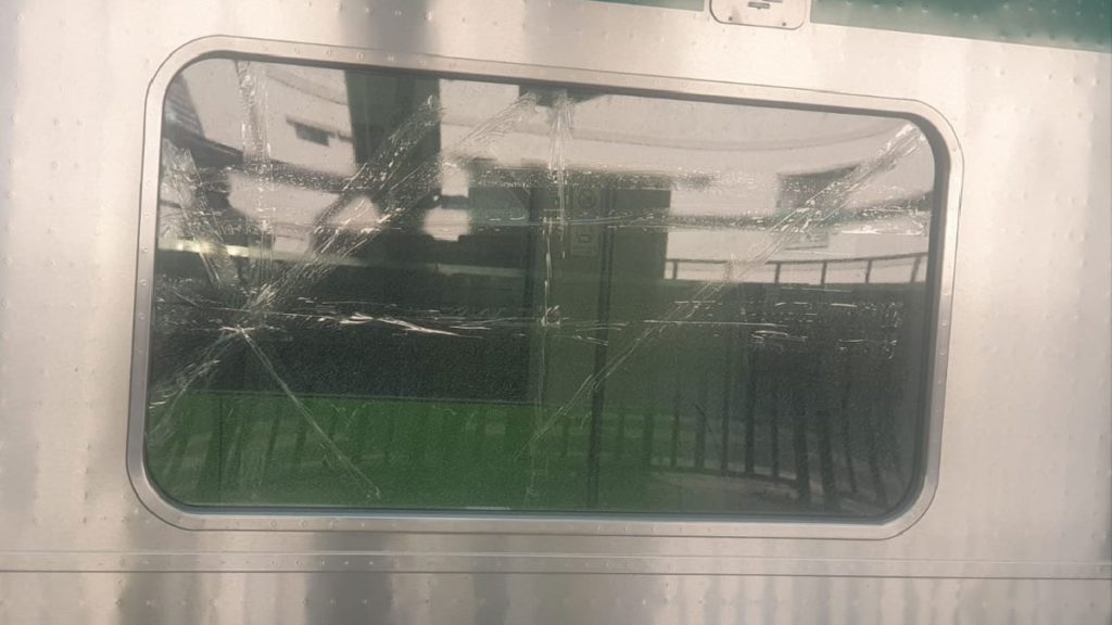 রোববার সকাল ১১টার দিকে রাজধানীর আগারগাঁও থেকে উত্তরা উত্তর স্টেশনে যাওয়ার পথে মেট্রোরেলের একটি কোচের জানালায় ঢিল ছুড়ে মারা হয়। এতে কোনো যাত্রী আঘাত না পেলেও জানালাটি ক্ষতিগ্রস্ত হয়েছে।