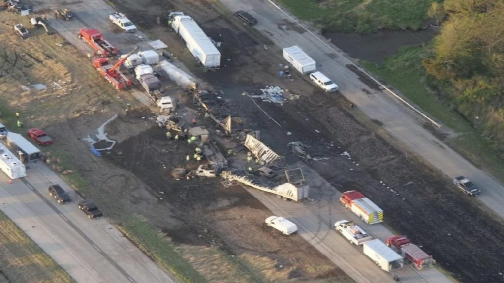 ইলিনয় পুলিশের সদস্য রায়ান স্টারিক বলেন, দুই মাইল এলাকার মধ্যে দুর্ঘটনাগুলো ঘটে। ৭০টির বেশি বিভিন্ন ধরনের গাড়ি আটকে পড়ে। এখনও অনেক গাড়ি সরিয়ে নেয়া সম্ভব হয়নি।
