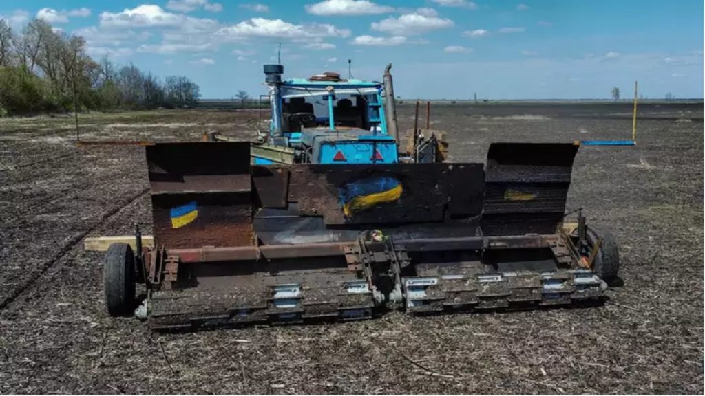 চাষাবাদের বদলে ট্রাক্টর দিয়ে করা হচ্ছে মাইন অপসারণ! রিমোট চালিত ট্রাক্টর দিয়ে ফসলি জমি মাইনমুক্ত করে তাক লাগিয়ে দিয়েছেন ইউক্রেনের এক ব্যক্তি। জমিতে ট্রাক্টর চালাচ্ছেন ঠিকই, তবে চাষের জন্য নয়। একে একে বিস্ফোরণ ঘটাচ্ছেন মাইনের। এর মাধ্যমে আবাদি জমিকে বিপদজনক করে তোলার রুশ কৌশলকে দেখাচ্ছেন বৃদ্ধাঙ্গুলি। খবর ইয়াহু নিউজের।