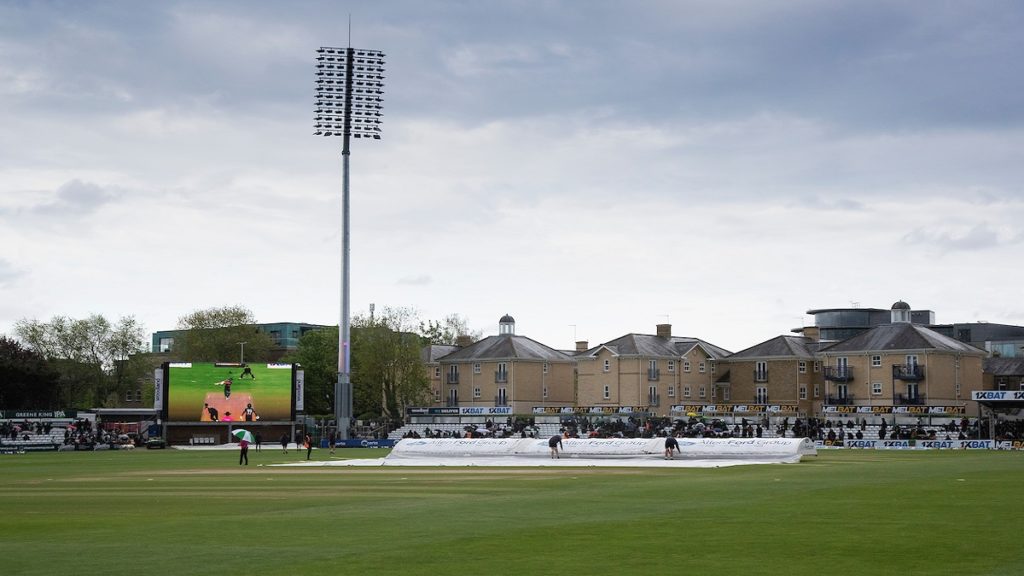 ইংল্যান্ডের চেমসফোর্ডে ৩ ম্যাচ ওয়ানডে সিরিজের প্রথম ওয়ানডে ম্যাচে বৃষ্টির আশঙ্কা ছিল শুরু থেকেই। বাংলাদেশ পুরো ইনিংস খেলতে পারলেও আয়ারল্যান্ডের ব্যাটিংয়ে নামার পর থেকে মেঘ জড়ো হতে থাকলো। ১৭তম ওভারে নেমে গেলো বৃষ্টি। ড্রেসিংরুমে দুই দল।