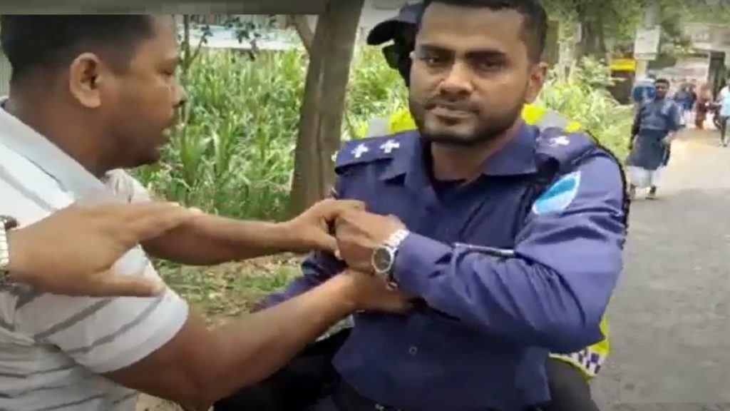ঢাকা-খুলনা মহাসড়কের রাজবাড়ী সদর উপজেলার বসন্তপুর এলাকায় পুলিশের পোশাক পরে চাঁদাবাজির অভিযোগে জুনায়েদ পাটোয়ারী (৩১) ও সৌরভ হোসেন (২০) নামে দুই ব্যক্তিকে আটক করেছে পুলিশ। শুক্রবার (১২ মে) দুপুরে সামাজিক যোগাযোগ মাধ্যমে এ ঘটনার একটি ভিডিও ছড়িয়ে পড়েছে।