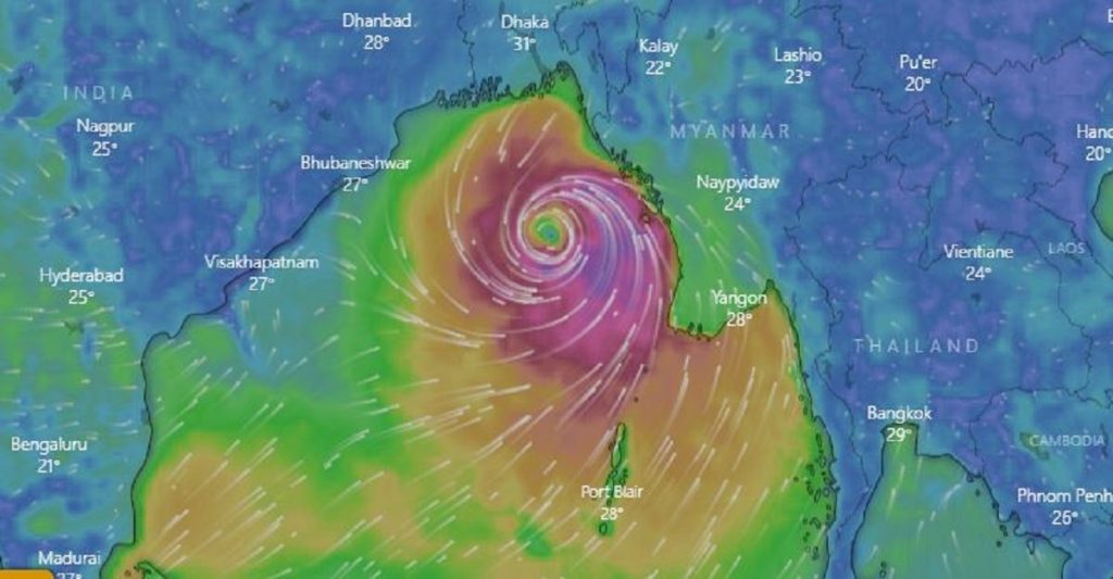 অতি প্রবল ঘূর্ণিঝড় কেন্দ্রের ৭৪ কি. মি. এর মধ্যে বাতাসের একটানা সর্বোচ্চ গতিবেগ ঘণ্টায় ১৯০ কি. মি। যা দমকা অথবা ঝড়ো হাওয়ার আকারে ২১০ কি. মি. পর্যন্ত বৃদ্ধি পাচ্ছে। অতি প্রবল ঘূর্ণিঝড় কেন্দ্রের নিকটবর্তী এলাকায় সাগর খুবই বিক্ষুদ্ধ রয়েছে। কক্সবাজার সমুদ্রবন্দরকে ১০ নম্বর মহাবিপদ সংকেত (পুনঃ) দেখিয়ে যেতে বলা হয়েছে। চট্টগ্রাম ও পায়রা সমুদ্রবন্দরসমূহকে ০৮ নম্বর মহাবিপদ সংকেত (পুনঃ) দেখিয়ে যেতে বলা হয়েছে। আর মোংলা সমুদ্রবন্দরকে ০৪ নম্বর স্থানীয় হুঁশিয়ারী সংকেত (পুনঃ) দেখিয়ে যেতে বলা হয়েছে।