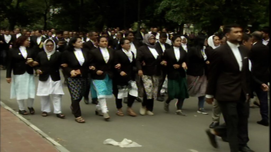 আজ দুপুরে সুপ্রিম কোর্ট বার ভবন থেকে মিছিল বের করে সরকার বিরোধী স্লোগান দেন বিএনপিপন্থী আইনজীবীরা । অপ্রীতিকর ঘটনা এড়াতে অতিরিক্ত পুলিশ মোতায়েন করা হয়েছে সুপ্রিম কোর্ট প্রাঙ্গণে। এর কিছুক্ষণ পর পাল্টাপাল্টি মিছিল বের করে আওয়ামী লীগপন্থী আইনজীবীরা। বার সম্পাদক কক্ষের সামনে থেকে মিছিল নিয়ে হাইকোর্ট প্রাঙ্গণ প্রদক্ষিণ করে তারা।