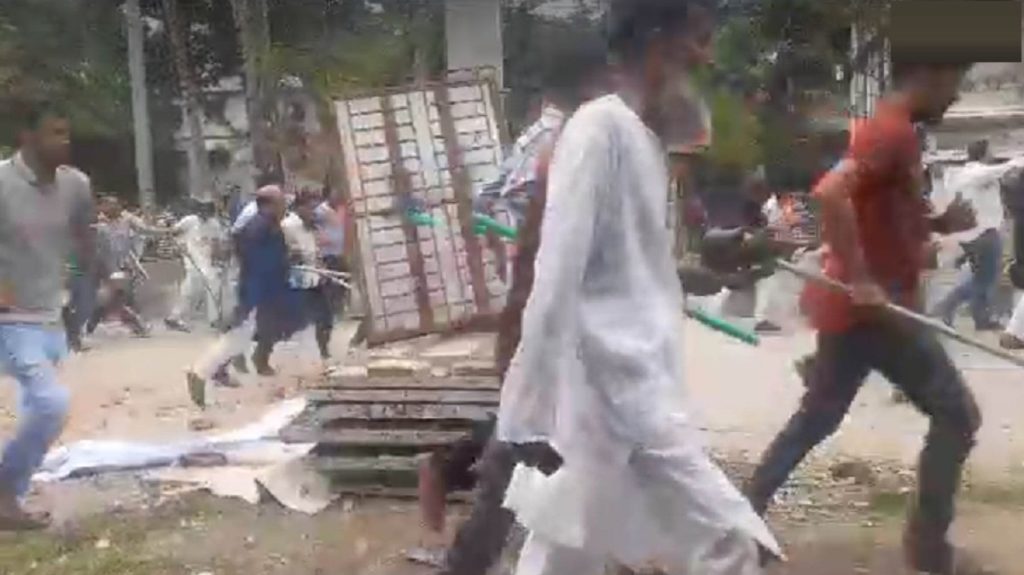 এ খবর ছড়িয়ে পড়লে জেলা যুবলীগ ও জেলা আওয়ামীলীগের নেতৃবৃন্দরা ঘটনাস্থলে পৌঁছলে পুনরায় ধাওয়া-পাল্টা ধাওয়া ও সংঘর্ষ শুরু হয়। পরে পরিস্থিতি নিয়ন্ত্রণে আনতে কয়েক রাউন্ড কাদানে গ্যাস ও টিয়ার সেল নিক্ষেপ করে পুলিশ। এ ঘটনায় উভয় দলের অন্তত ১৫ জন আহত হওয়ার খবর পাওয়া গেছে। এসময় মাইটিভির সাংবাদিক মশিউর রহমান বাবলু ইটের আঘাতে আহত হন।