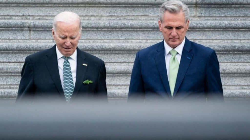 মূলত, ঋণ ইস্যুতে গত ক’দিন ধরেই তোলপাড় মার্কিন রাজনীতি। বাইডেন প্রশাসন নির্দিষ্ট সময়ের মধ্যে ঋণের সীমা বাড়াতে ব্যর্থ হলে ৩১ ট্রিলিয়ন ডলারের খেলাপি হবে কেন্দ্রীয় সরকার। নিম্নকক্ষে সংখ্যাগরিষ্ঠ রিপাবলিকানদের দাবি, খরচ না কমানো হলে প্রস্তাবে তারা ভোট দেবেন না।