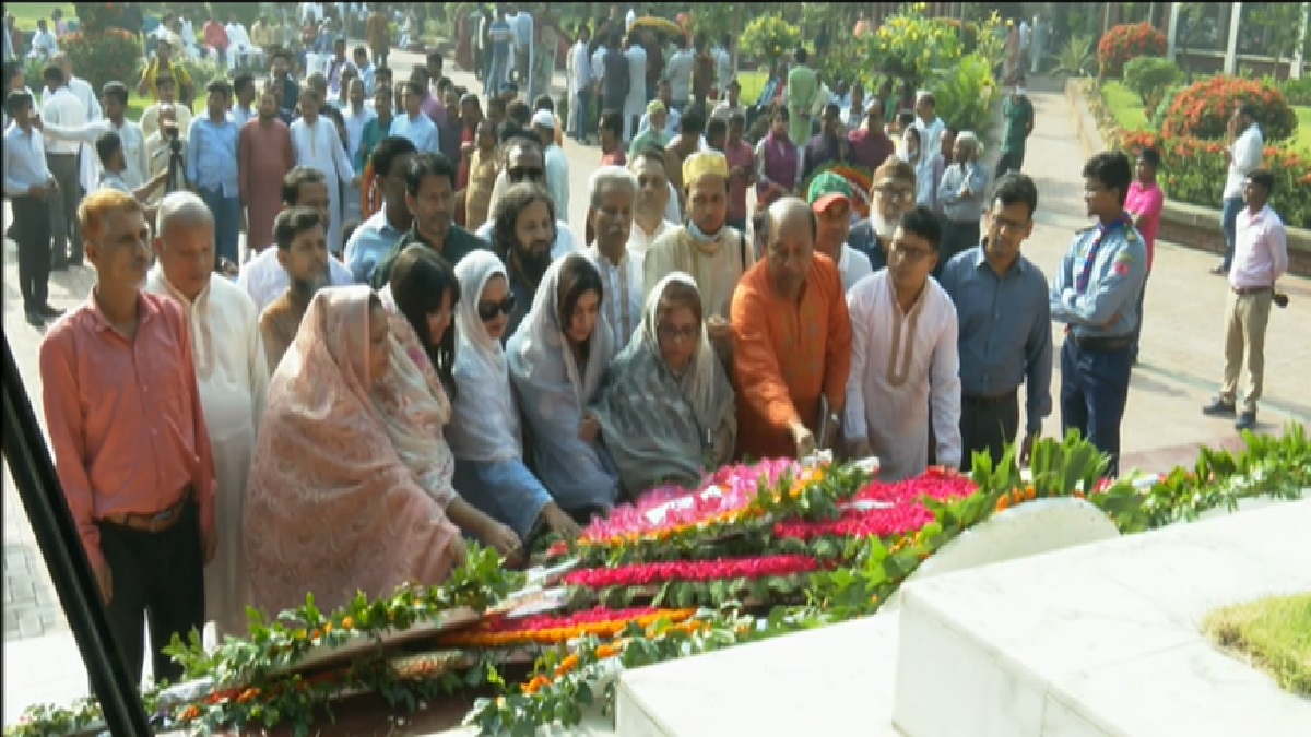 জাতীয় কবি'র সমাধিতে শ্রদ্ধা নিবেদন করছেন কবি'র পরিবারবর্গ।
