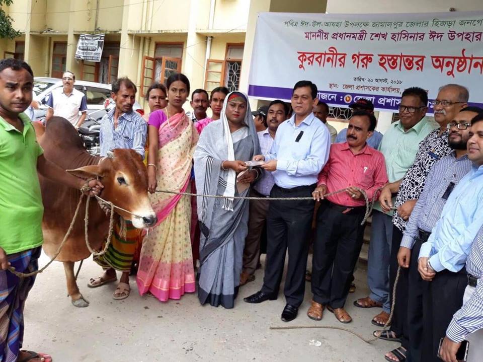 জামালপুর সদরের হিজড়াপল্লীতে কোরবানির জন্য গরু উপহার দিয়েছেন মাননীয় প্রধানমন্ত্রী শেখ হাসিনা। প্রধানমন্ত্রীর পক্ষ থেকে জেলা প্রশাসক আজ সোমবার সকালে তাদের কাছে গরু হস্তান্তর করেন।