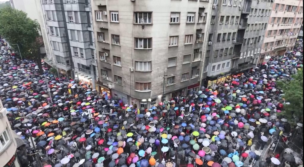 সার্বিয়ায় ঝড়বৃষ্টি উপেক্ষা করেই সরকার বিরোধী আন্দোলনে নামলেন হাজার-হাজার মানুষ। শনিবার (২৭ মে) ছাতা হাতে দেখা যায় বিরল বিক্ষোভ-প্রতিবাদ। খবর রয়টার্সের।