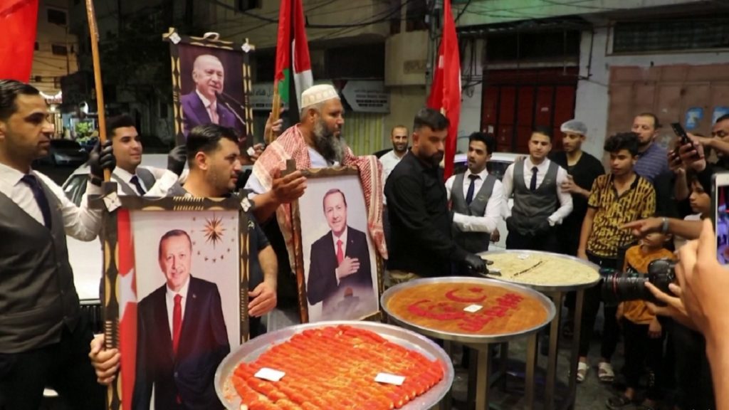জনপ্রিয় নেতা রিসেপ তাইয়েপ এরদোগানের স্মরণীয় জয়ে উল্লাসে মেতেছে ফিলিস্তিনও। রোববার (২৮ মে) রাতে উৎসবের নগরীতে পরিণত হয় গাজা উপত্যকায়। খবর রয়টার্সের।