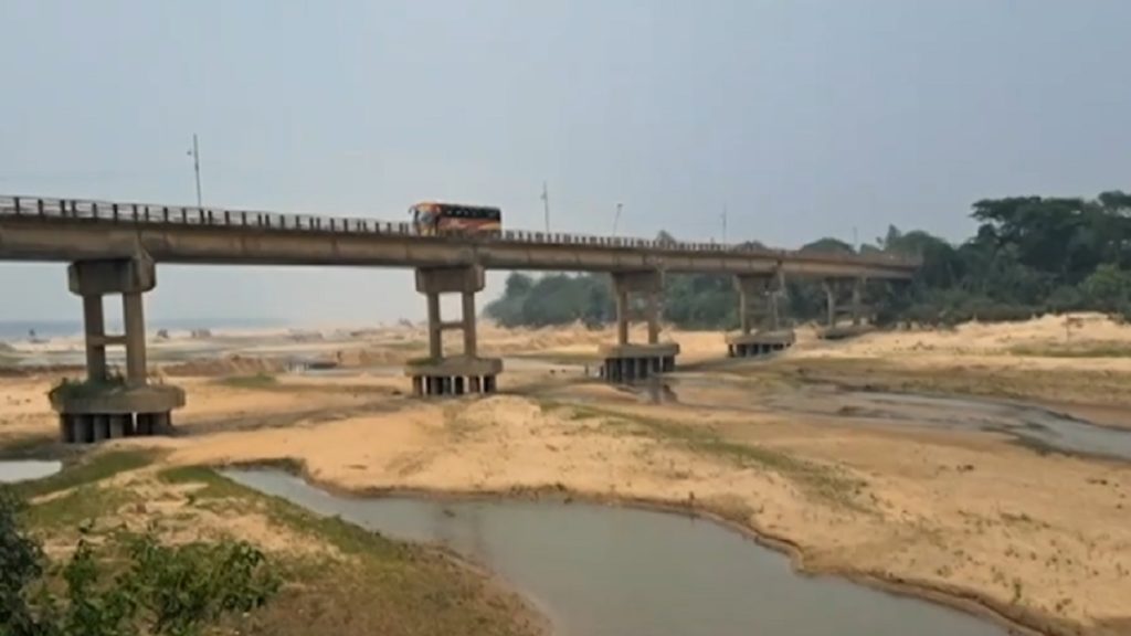বাংলাদেশ-ভারত আন্তঃসীমান্ত সোমেশ্বরী নদী। ৫০ কিলোমিটার দৈর্ঘ্যের সর্পিলাকৃতির এই নদীটির ওপর নির্মিত সেতুটি নিয়মবহির্ভূত বালু উত্তোলনের কারণে এখন হুমকির মুখে পড়েছে। মাটি ব্যবস্থাপনা আইন না মেনে বালু উত্তোলন করায় সেতুর পিলারের নিচ থেকে সরে যাচ্ছে মাটি। ফলে ভয়াবহ দুর্ঘটনার ঝুঁকিতে রয়েছেন স্থানীয়রা।