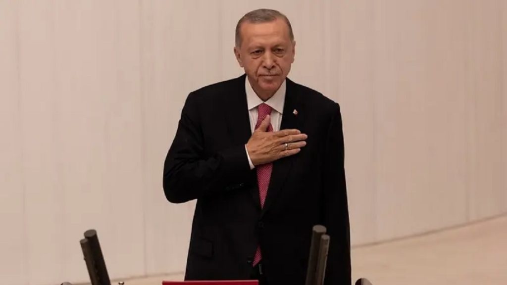 শপথ গ্রহণের আগে অন্তর্বর্তীকালীন পার্লামেন্টের স্পিকারের কাছ থেকে ম্যান্ডেট গ্রহণ করেন এরদোগান। তুরস্কের ইতিহাসে সবচেয়ে বেশি সময় নেতৃত্ব দেয়া এই নেতা ২৮ মে রান অফ ভোটে ৫২.২ শতাংশ সমর্থন পেয়ে বিজয় লাভ করেন। জীবনযাত্রার ব্যয় সংকটকে তার জয়ের পথে বাধা হিসেবে দেখা হচ্ছিল। কিন্তু বেশিরভাগ জরিপের ফলকে কাঁচকলা দেখিয়ে ঠিকই বিজয় ছিনিয়ে নেন এরদোগান।
