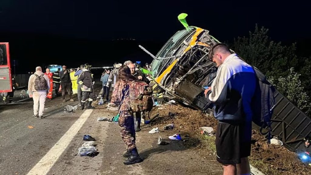 রোববার (৪ জুন) স্থানীয় সময় ভোরে দেশটির দক্ষিণাঞ্চলীয় শহর ভ্যালেসকারদায় ঘটে এ দুর্ঘটনা। বাসটি বিদেশি পর্যটকসহ ৩৮ জন যাত্রী নিয়ে লেসে শহর থেকে রোমের দিকে যাচ্ছিল।