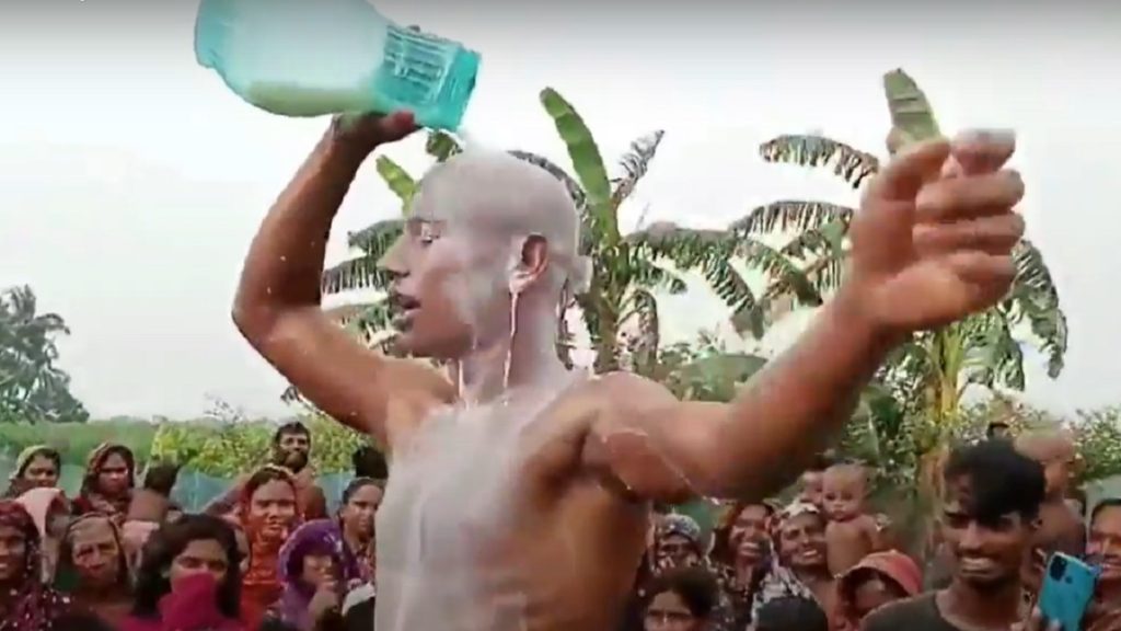 শনিবার (১০ জুন) এ ঘটনা ঘটেছে সাতক্ষীরার কলারোয়া উপজেলার চন্দনপুর ইউনিয়নের গোয়ালপাড়া গ্রামে। এ দিন বেলা ১১টার দিকে মাথা ন্যাড়া করে দুধ দিয়ে গোসল করেন প্রেমিক আহাদ আলী। এ সময় সেখানে তার পরিবার ছাড়াও উপস্থিত ছিলেন প্রতিবেশীরাও।
