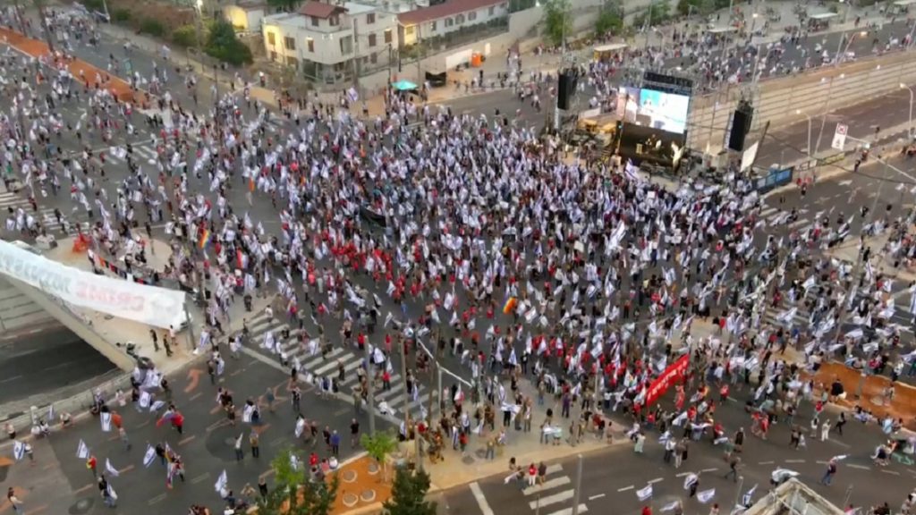 পাঁচ মাসেও কমেনি বিচার বিভাগীয় সংস্কার ইস্যুতে ইসরায়েলের সাধারণ মানুষের ক্ষোভ। এখনও বিক্ষোভ-প্রতিবাদে অংশ নিচ্ছেন হাজার হাজার মানুষ। খবর রয়টার্সের।