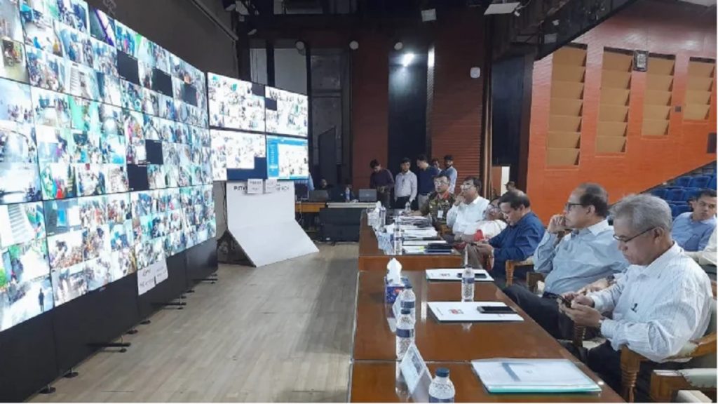 সকাল থেকেই প্রধান নির্বাচন কমিশনার কাজী হাবিবুল আউয়াল, কমিশনার অবসরপ্রাপ্ত ব্রিগেডিয়ার জেনারেল আহসান হাবীব খান, কমিশনার মো. আলমগীর, কমিশনার রাশেদা সুলতানা ও কমিশন সচিব মো. জাহাংগীর আলম কন্ট্রোল রুমে উপস্থিত থেকে নির্বাচন পর্যবেক্ষণ করছেন।