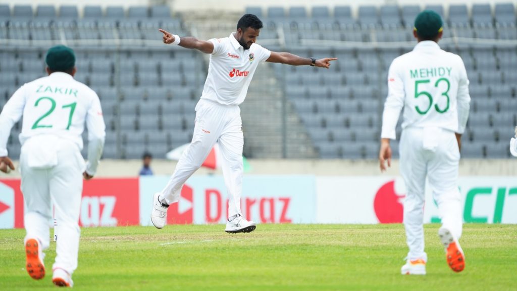 পাঁচ স্লিপ, এক গালি রেখে অ্যাটাকিং ফিল্ড সেট করেন অধিনায়ক লিটন দাস। যা টেস্ট ক্রিকেটের অনিন্দ্য সুন্দর দৃশ্যের একটি। এবাদত-তাসকিন-শরিফুল ত্রয়ীর আগ্রাসী আক্রমণে যেন অসহায় হয়ে পড়ে জাজাই-জামাল।
