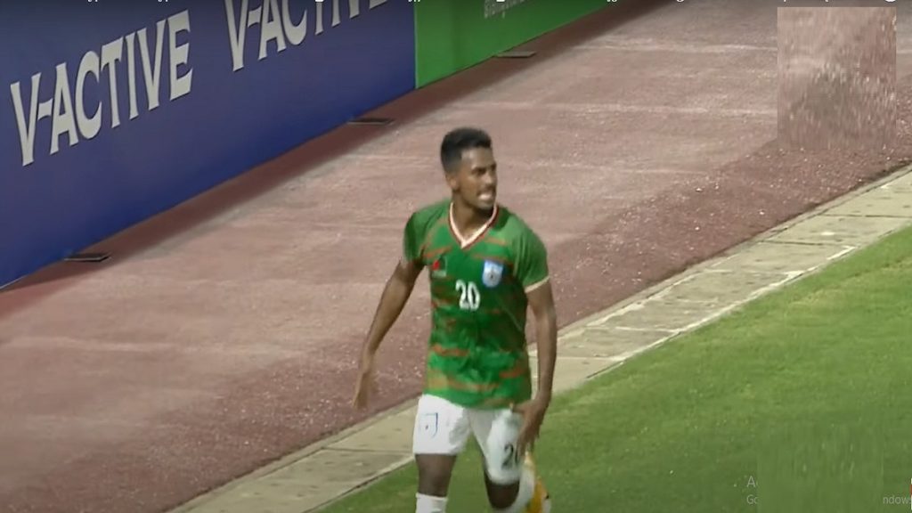 মজিবুর রহমান জনির দারুণ গোলে এগিয়ে যায় সফরকারীরা। খেলা শুরুর ২৪ মিনিটের মাথায় মাঝ মাঠ থেকে থ্রু বলে ডি বক্সের ভেতরে বল পান জনি। গোল কিপারকে একা পেয়ে বাঁ পাশ দিয়ে বল জালে জড়ান তিনি। এতে ১-০ গোলে এগিয়ে যায় হাভিয়ের কাবরেরা শিষ্যরা।