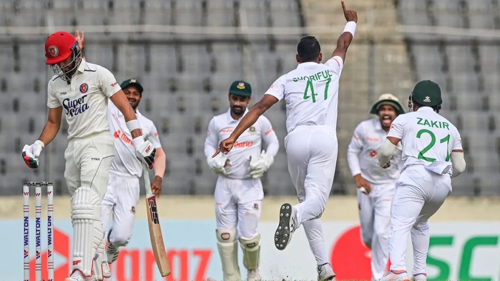 নিজেদের দ্বিতীয় ইনিংসে ব্যাট করতে নেমে শুরুতেই উইকেট হারায় আফগানিস্তান। শরিফুল ইসলামের ফুল লেন্থের বল ফ্লিক করার চেষ্টা করলেও ব্যাটে লাগাতে পারেননি ইব্রাহিম জাদরান। বল আঘাত হানে তার প্যাডে। শরিফুলের জোরালো আবেদনে সাড়া না দিয়ে পারেননি আম্পায়ার।