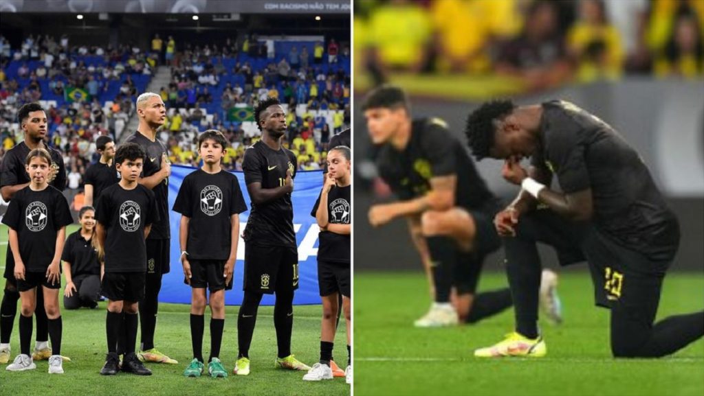 বার্সেলোনার আরসিডিই স্টেডিয়ামে প্রীতি ম্যাচে গিনির বিপক্ষে ৪-১ গোলে জিতেছে ব্রাজিল। জোয়েলিনটন, রদ্রিগো, এডার মিলিতাও ও ভিনিসিয়াস জুনিয়র একটি করে গোল করেন। তবে এই ম্যাচের বড় খবর এই জয় নয়। ভিনিসিয়াস জুনিয়রের প্রতি সংহতি জানাতে প্রথমবারের মতো সম্পূর্ণ কালো রঙের জার্সিতে মাঠে নেমেছিল সেলেসাওরা।
