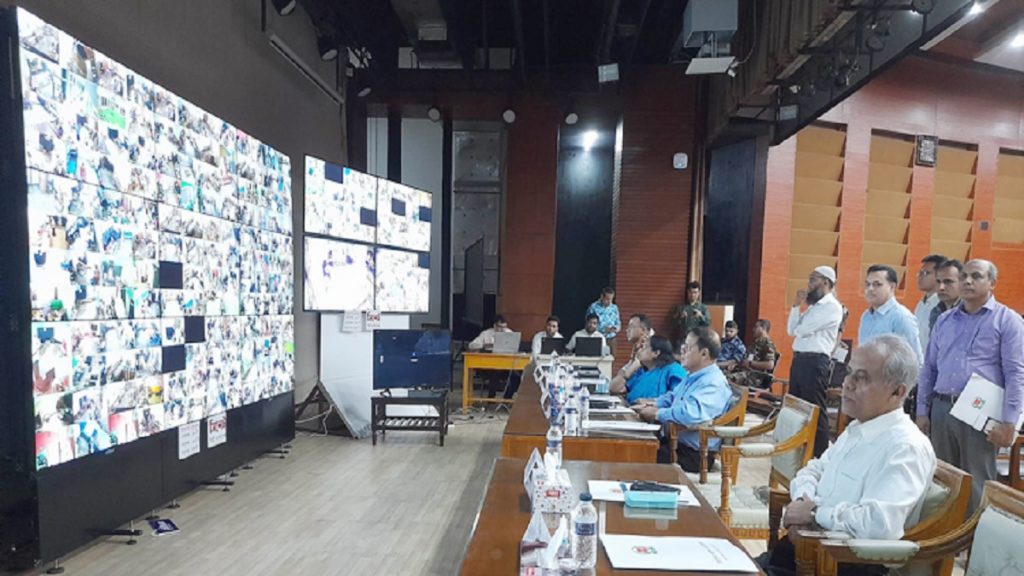 নির্বাচন কমিশনার ব্রিগেডিয়ার জেনারেল (অব.) আহসান হাবীব খান, নির্বাচন কমিশনার মো. আলমগীর, নির্বাচন কমিশনার রাশেদা সুলতানা কন্ট্রোল রুমে উপস্থিত থেকে নির্বাচন পর্যবেক্ষণ করছেন।