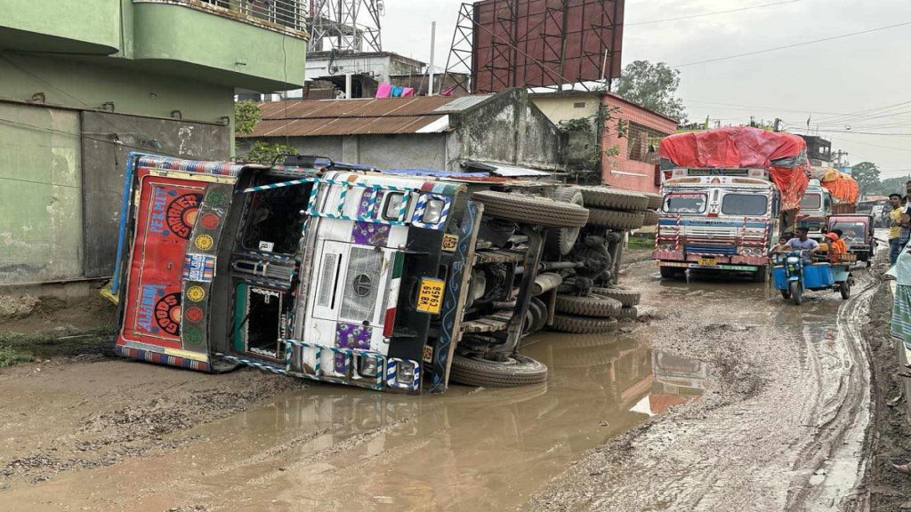 হিলি স্থলবন্দরের প্রধান সড়কে আমদানিকৃত পণ্যবোঝাই একটি ভারতীয় ট্রাক বিকল হয়ে পড়ায় বন্ধ রয়েছে হিলি স্থলবন্দর দিয়ে দু’দেশের পণ্য আমদানি-রফতানি বানিজ্য। এদিকে, প্রধান রাস্তায় ট্রাক বিকল হয়ে পড়ায় সৃষ্ট যানজটে ব্যাপক ভোগান্তি পোহাচ্ছেন হিলির সাধারণ মানুষ।