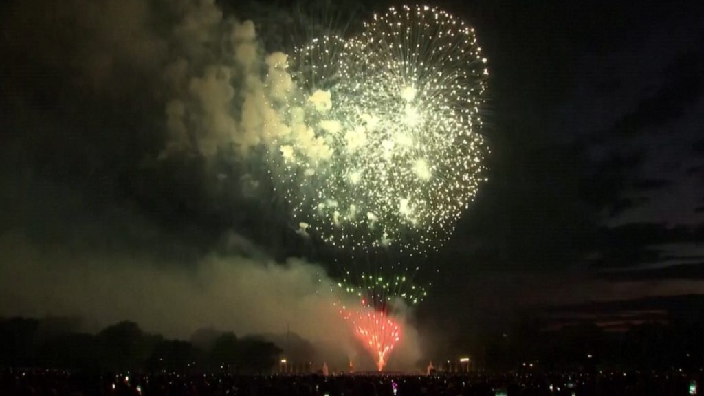 সন্ধ্যায় ন্যাশনাল মল এবং লিংকন মেমোরিয়ালের কাছে হাজির হন হাজার-হাজার মানুষ। ১৭ মিনিট ধরে চলে নজরকাড়া আয়োজন।