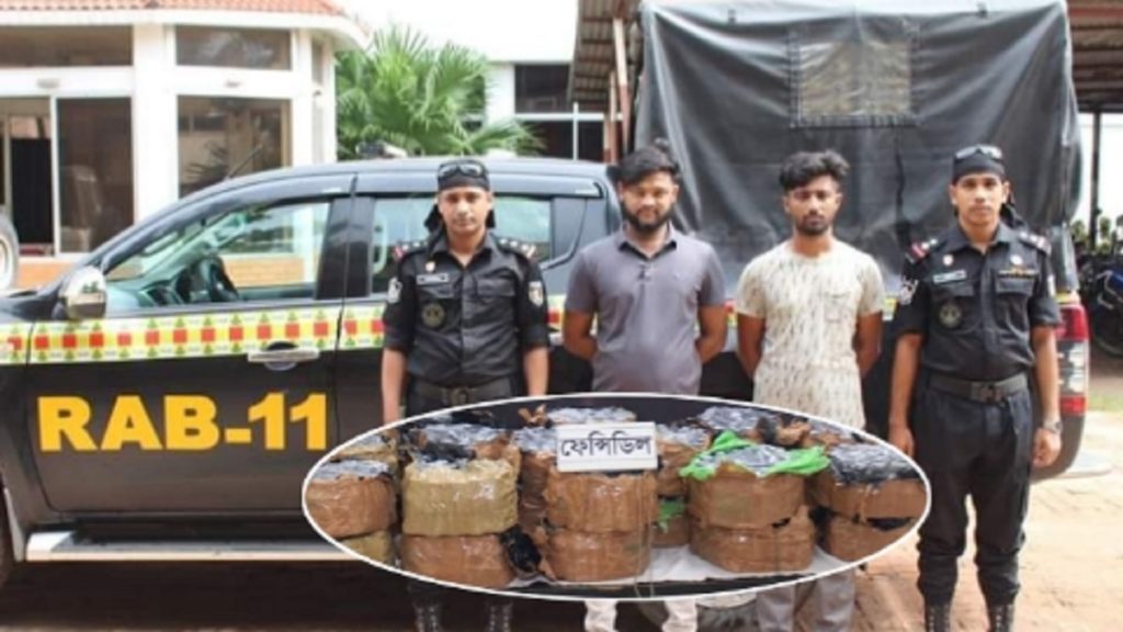 র্যাব জানান, গোপন সংবাদের ভিত্তিতে রোববার সকালে রূপগঞ্জের মুড়াপাড়া ইউনিয়নের মাছিমপুর কান্দিরপাড়া এলাকায় অভিযান চালায় তারা। এ সময় জনৈক হাজী ইয়াকুব আলীর পরিত্যক্ত মুরগীর ফার্মের ভেতর তল্লাশি চালিয়ে ১১০০ বোতল ফেনসিডিলসহ মাদক কারবারি ফাহিম ও এমদাদুল হককে গ্রেফতার করা হয়।