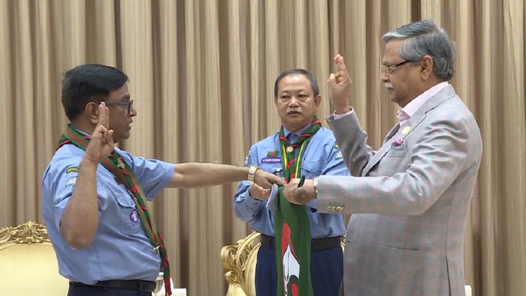 বাংলাদেশ স্কাউটসের প্রধান জাতীয় কমিশনার ড. মোজাম্মেল হক খান বঙ্গভবনে রাষ্ট্রপতিকে দীক্ষা বাক্য পাঠ করান ও স্কাউট ব্যাজ পরিয়ে দেন। এ সময় বাংলাদেশ স্কাউটসের সভাপতি আবুল কালাম আজাদ আনুষ্ঠানিকভাবে রাষ্ট্রপতিকে স্কার্ফ পরিয়ে দেন।
