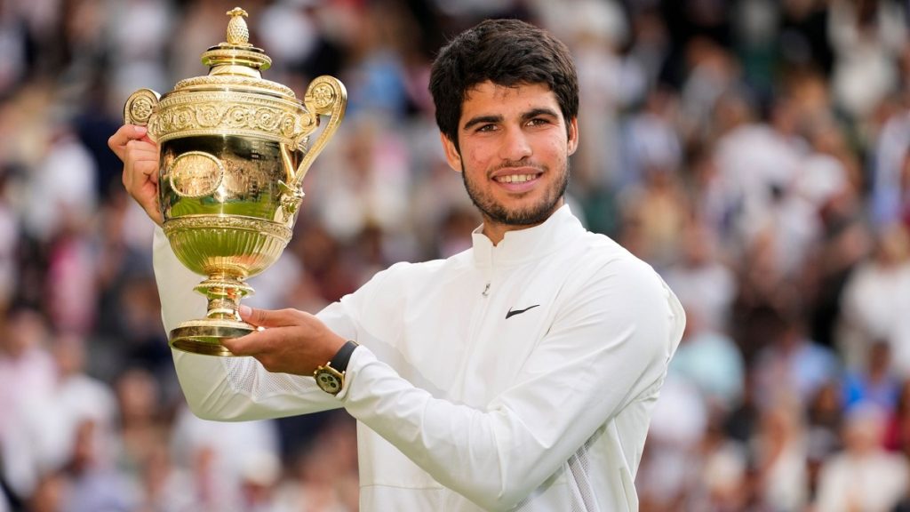 পৌনে পাঁচ ঘণ্টার লড়াইয়ে জোকোভিচকে ৩-২ সেটে হারিয়েছেন এই স্প্যানিয়ার্ড। গত বছর ইউএস ওপেন জয়ের পর দ্বিতীয় গ্র্যান্ড স্লাম জয়ের স্বাদ পেলেন আলকারাজ। আর ৭ বছর পর ফাইনাল হেরে কান্নায় ভেঙে পড়েন জোকোভিচ।