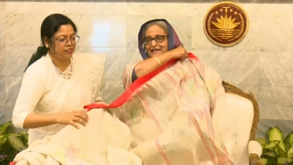 কলা গাছের তন্তু থেকে তৈরি শাড়ি ও হস্তশিল্পজাত পণ্য রফতানির নির্দেশনা দিয়েছেন প্রধানমন্ত্রী শেখ হাসিনা।