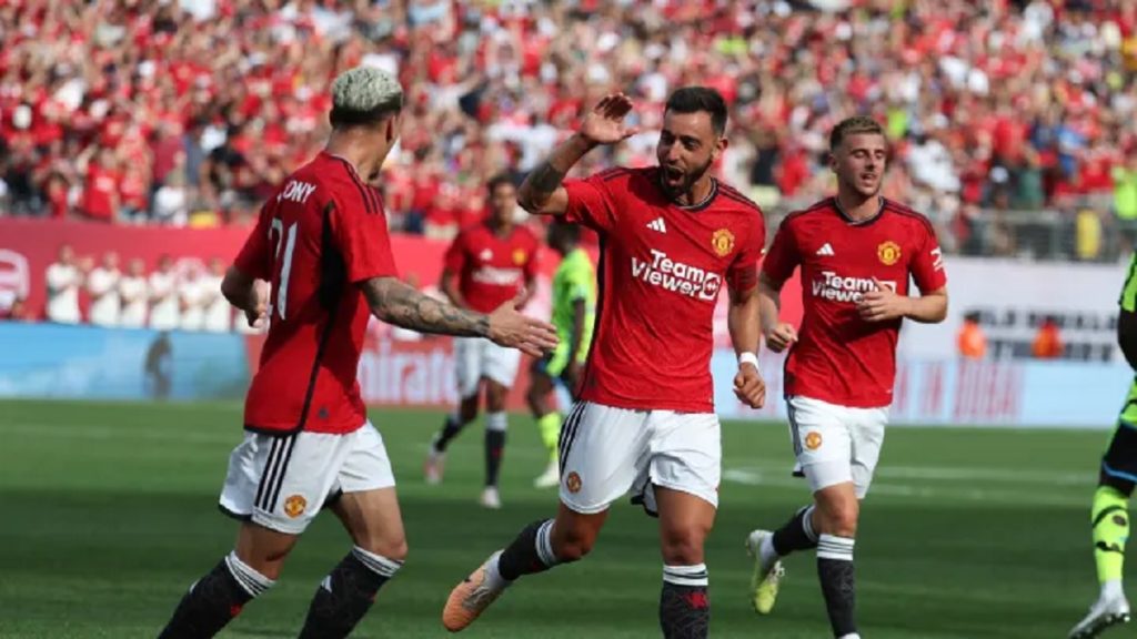 গ্রীষ্মকালীন প্রাক-মৌসুম প্রস্তুতি ম্যাচে আর্সেনালকে ২-০ গোলে হারিয়েছে ম্যানচেস্টার ইউনাইটেড। ম্যান ইউ’র হয়ে গোল করেছেন ব্রুনো ফার্নান্দেস ও জেডন সানচো। নির্ধারিত সময়ে ফলাফল এলেও দর্শকদের বিনোদন এবং নিজেদের প্রস্তুতি আরও কিছুটা ঝালিয়ে নিতেই পেনাল্টি শুটআউটে যায় দুই দল। সেখানেও জয়ী দলের নাম ম্যানচেস্টার ইউনাইটেড। ইএসপিএনের খবর।