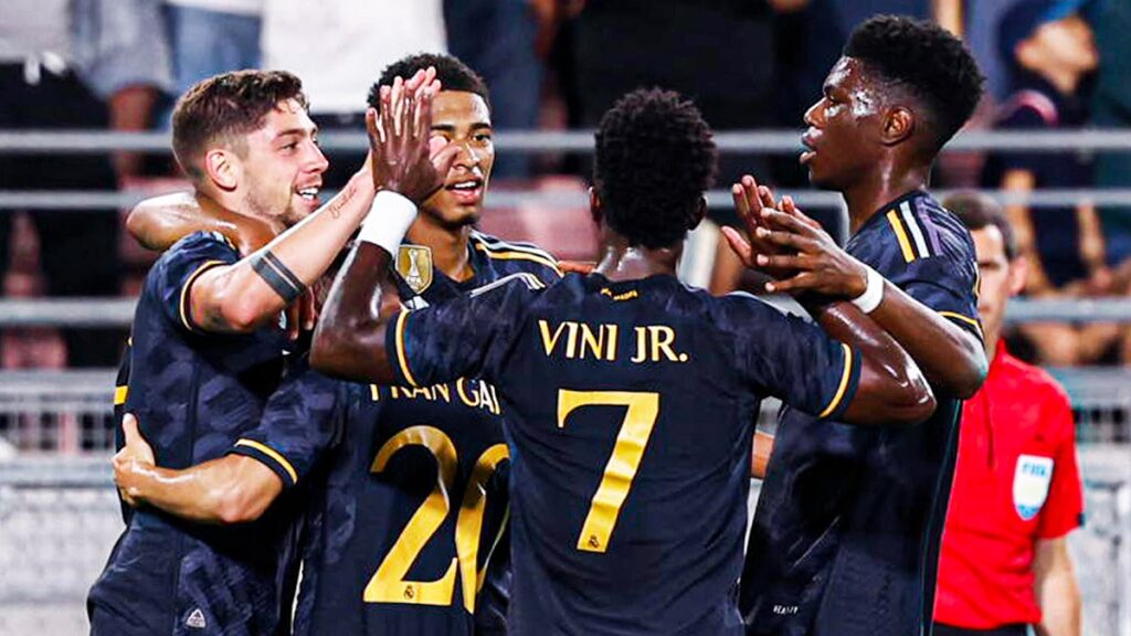 বাংলাদেশ সময় সোমবার (২৪ জুলাই) সকালে ক্যালিফোর্নিয়ার রোজ বৌল স্টেডিয়ামে ক্লাব ফ্রেন্ডলি ম্যাচটিতে পিছিয়ে পড়েও এসি মিলানকে ৩-২ গোলে হারায় রিয়াল। শুরু থেকেই খেলার আধিপত্য ধরে রাখে এসি মিলান। ২৫ মিনিটে ফিকায়ো তোমোরির গোলে ডেডলক ভাঙ্গে রোজোনারিরা। ৪২ মিনিটে ব্যবধান ২-০ করেন লুকা রোমেরো। প্রথমার্ধে এগিয়ে থেকেই বিরতিতে যায় ইতালির ক্লাবটি।