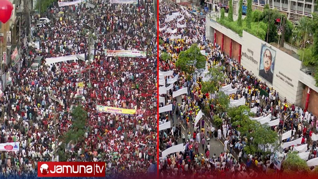 ক্ষমতাসীনদের পদত্যাগ ও নির্দলীয় সরকারের দাবিতে নয়াপল্টনে কাল (২৭ জুলাই) বিএনপির মহাসমাবেশ। একই দিন বায়তুল মোকাররমের দক্ষিণ গেটে সমাবেশ করবে আওয়ামী লীগের সহযোগী তিনটি সংগঠন। আওয়ামী লীগের নেতারা বলছেন, তারা দেশের মানুষের পাশে থাকবেন। আর বিএনপি বলছে, শান্তিপূর্ণ কর্মসূচি পালন করবে নেতাকর্মীরা। রাজনৈতিক বিশ্লেষকদের পরামর্শ, সংঘাত নয়; আলোচনার মাধ্যমে সংকট সমাধানই গণতন্ত্রের শিষ্টাচার।