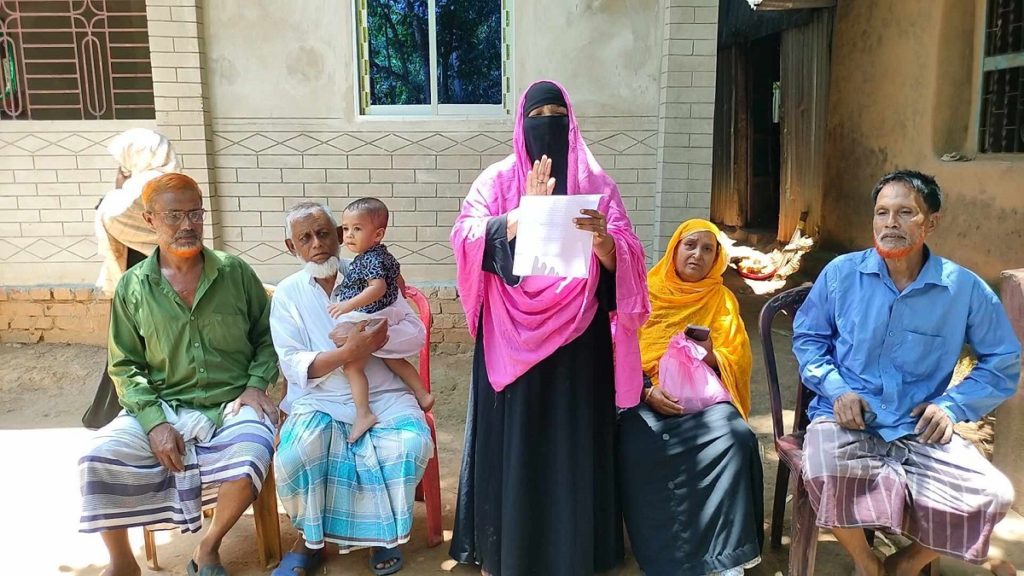 সংবাদ সম্মেলনে লিখিত বক্তব্য পাঠ করেন ভুক্তভোগীর মা বিলকিছ বেগম। লিখিত বক্তব্যে তিনি বলেন, আমাদের পাশ্ববর্তী গ্রামের মনিরুল ইসলাম ওরফে মনির মাস্টার (৩৭) এক সময় আমার মেয়েকে প্রাইভেট পড়াতো। এরই এক পর্যায়ে সে আমার মেয়ের সাথে প্রেমের সম্পর্ক গড়ার চেষ্টা করে। আমরা মান-সম্মানের কথা চিন্তা করে আমাদের মেয়েকে অন্যত্র বিয়ে দেই। বর্তমানে তার স্বামী প্রবাসে রয়েছে। তার একটি ১৭ মাস বয়সী ছেলে সন্তানও আছে। কিন্তু, বিয়ের পরেও মনির মাস্টার আমার মেয়ের সাথে যোগাযোগ করতে চায়। আমরা তাকে এসব করতে নিষেধ করছি। এতে সে আমাদের উপর ক্ষিপ্ত হয়ে আদালতে একটি মিথ্যা মামলা দায়ের করে হয়রানি করছে।