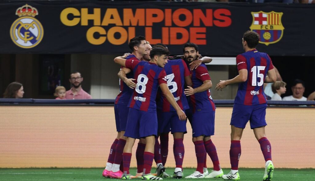 যুক্তরাষ্ট্রের মাটিতে তৃতীয় এল ক্লাসিকো দেখেছে বিশ্ব। এর আগের দুটোর মতো এবারও জয় পেয়েছে বার্সেলোনা। টেক্সাসের আর্লিংটনের এটি অ্যান্ড টি স্টেডিয়ামে ৮২ হাজার ২৬ জন দর্শকের সামনে এই প্রীতি ম্যাচে দুই দলেরই আক্রমণের প্রাবল্য বলে দেয়, এল ক্লাসিকর পক্ষে বন্ধুত্বপূর্ণ হয়ে থাকাটা কেবল কঠিন নয়, অনেকটা অসম্ভবই বটে! মূলত ফিনিশিংয়ে মুনশিয়ানা দেখিয়েই রিয়ালের উপর ছড়ি ঘুরিয়েছে জাভির দল। লস ব্লাঙ্কোসদের উড়িয়ে দিয়েছে ৩ গোলে। প্রাক মৌসুমে এটি ছিল বার্সেলোনার দ্বিতীয় ম্যাচ। সেই হিসেবে এ ম্যাচ থেকে ইতিবাচক অনেক কিছুই খুঁজে পেতে পারে বার্সা।