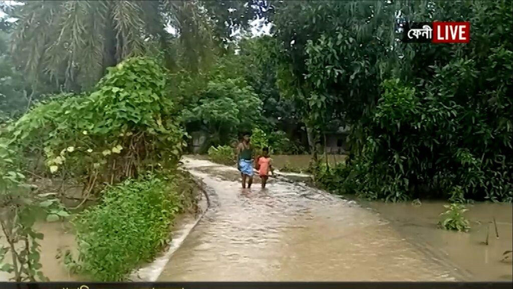 পরশুরাম উপজেলার অলোকা এলাকায় সোমবার (৭ আগস্ট) রাতে পানির তোড়ে বেড়িবাঁধের একাংশ ধসে যায়। প্লাবিত হয় তিনটি গ্রাম। ফুলগাজী উপজেলায় ধসে যাওয়া বেড়িবাঁধের দুইটি স্থান দিয়ে এখনও পানি ঢুকছে লোকালয়ে। প্লাবিত হয়েছে বসতভিটা ও ফসলি জমি। ভেসে গেছে অনেক পুকুরের মাছ। বাড়িঘরে পানি ঢোকায় চরম ভোগান্তি পোহাতে হচ্ছে এসব এলাকার বাসিন্দাদের।