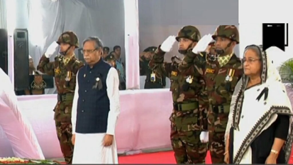 জাতীয় শোক দিবস উপলক্ষ্যে ধানমন্ডি ৩২ নম্বরে জাতির জনক শেখ মুজিবুর রহমানের প্রতিকৃতিতে শ্রদ্ধা জানিয়েছেন রাষ্ট্রপতি মোহম্মদ সাহাবুদ্দিন ও প্রধানমন্ত্রী শেখ হাসিনা। মঙ্গলবার (১৫ আগস্ট) সকাল সাড়ে ৬টায় শুরু হয় শ্রদ্ধা নিবেদনের প্রক্রিয়া। প্রধানমন্ত্রী শেখ হাসিনা প্রথমে প্রধানমন্ত্রী হিসেবে শ্রদ্ধা জানাবেন। পরে তিনি দলের নেতা ও মন্ত্রিসভার সদস্যদের নিয়ে বঙ্গবন্ধুর প্রতি শ্রদ্ধা নিবেদন করবেন।