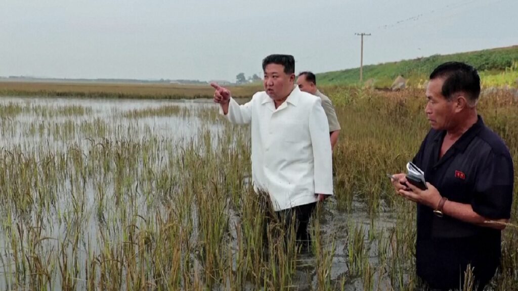 বন্যা দুর্গত এলাকা পরিদর্শনে গিয়ে, প্লাবিত জমিতে নেমে গেলেন উত্তর কোরিয়ার সর্বোচ্চ নেতা কিম জং উন। মঙ্গলবার (২২ আগস্ট) রাষ্ট্রীয় গণমাধ্যম কেআরটি প্রকাশ করে কিমের এ ছবি।