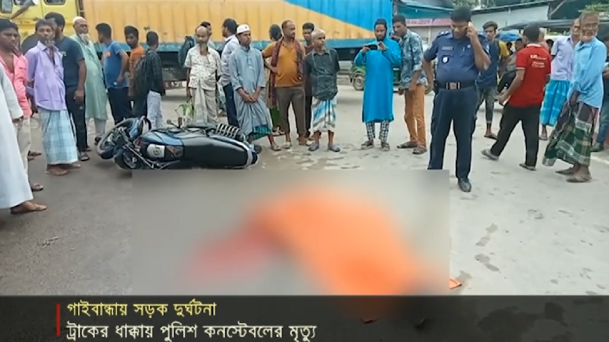 গাইবান্ধায় ট্রাকের ধাক্কায় বিপ্লব প্রামাণিক নামে এক ট্রাফিক পুলিশ কনস্টেবল নিহত হয়েছেন। বৃহস্পতিবার (২৪ আগস্ট) সকালে শহরের পুরাতন জেলখানা মোড়ের জিরো পয়েন্ট এলাকায় এই দুর্ঘটনা ঘটে।
