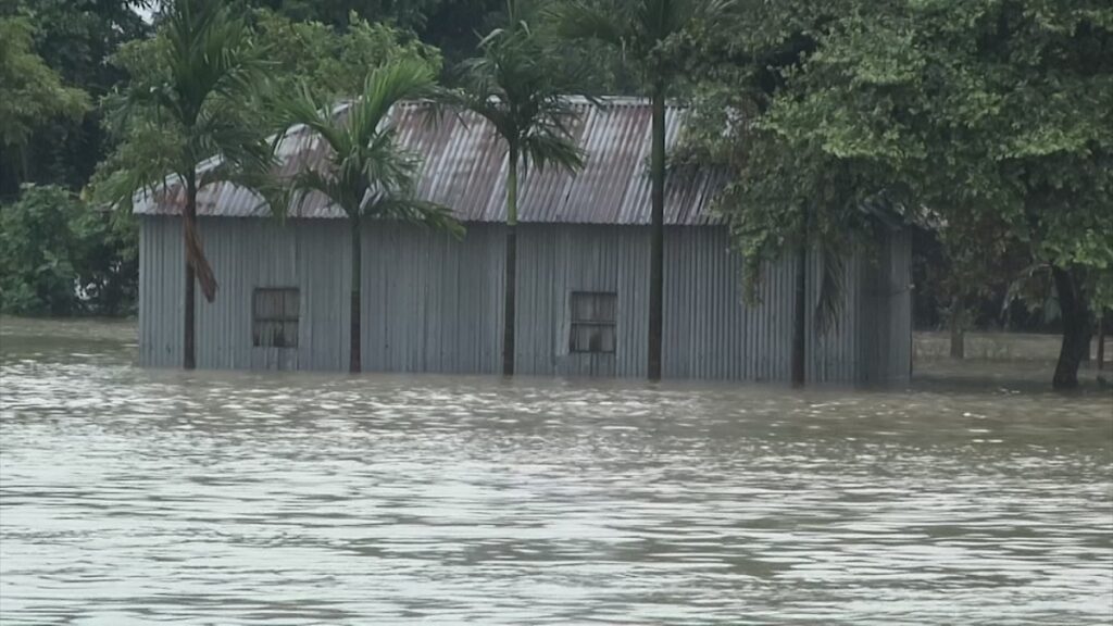 একই চিত্র লালমনিরহাটের হাতীবান্ধা, কালীগঞ্জ, আদিতমারী ও সদর উপজেলার বিভিন্ন চর ও নিম্নাঞ্চলের। ঘরবাড়িতে পানি ওঠায় ভোগান্তি সীমাহীন। ভেসে গেছে পুকুরের মাছ। ডুবে আছে আমন ক্ষেতও। দুর্গত এলাকায় ত্রাণ বিতরণের দাবি পানিবন্দি মানুষের।