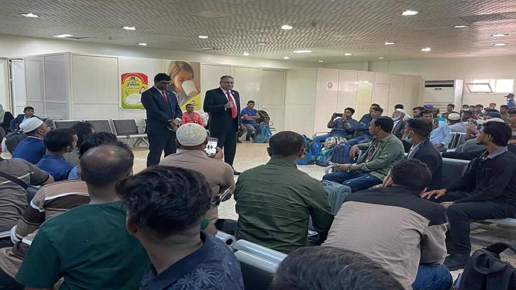 দেশটিতে দায়িত্বরত রাষ্ট্রদূত মেজর জেনারেল আবুল হাসনাত মোহাম্মদ খায়রুল বাশার প্রত্যাবাসনকৃত অভিবাসীদের সাথে বেনগাজীর বেনিনা বিমানবন্দরে সাক্ষাৎ করে তাদের বিদায় জানান। এ সময় তিনি প্রবাসীদের কল্যাণে বাংলাদেশ সরকার কর্তৃক গৃহীত বিভিন্ন পদক্ষেপ সম্পর্কে তাদের অবহিত করেন।
