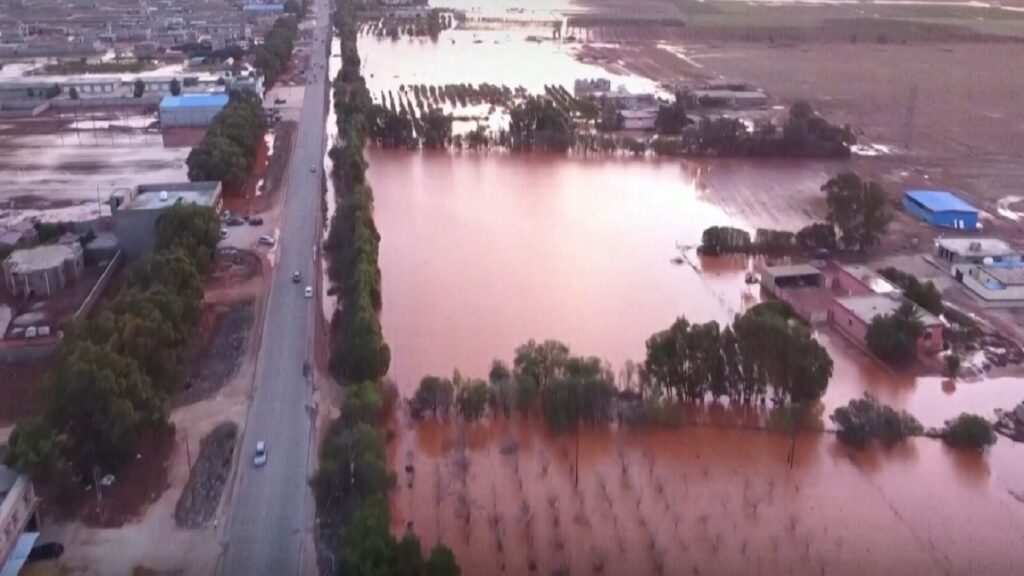 দেশটিতে জারি করা হয়েছে জরুরি অবস্থা। রোববার (১০ সেপ্টেম্বর) শক্তিশালী ঝড় দানিয়েল আঘাত হানে উত্তর আফ্রিকার দেশটিতে। তীব্র ঝড়ের প্রভাবে তৈরি হয়েছে বন্যা পরিস্থিতি। সবচেয়ে ক্ষতিগ্রস্ত বেনগাজি, সুসি, দেরনা ও আল মার্জ। লিবিয়ার রেড ক্রিসেন্ট জানিয়েছে, কেবল দেরনাতেই মৃত্যু হয়েছে দেড়শ’জনের। দু’টি বাধ ভেঙে তলিয়েছে ১ লাখ বাসিন্দার এলাকা। বিধ্বস্ত দেড় শতাধিক ঘরবাড়ি। ক্ষতিগ্রস্ত পশ্চিমাঞ্চলীয় শহর মিসরাতাও।
