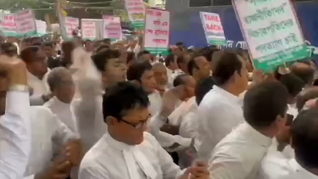 মঙ্গলবার (১২ সেপ্টেম্বর) সকালে ঢাকা বারের সামনে জড়ো হন আইনজীবীরা। একপর্যায়ে তারা মিছিল নিয়ে সামনে এগোতে থাকে। এ সময় পুলিশ তাদের লাঠিচার্জ করে ছত্রভঙ্গ করে দেয়।