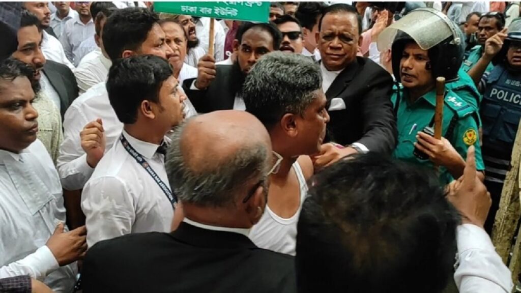 পুলিশ লাঠিচার্জ করে সরানোর চেষ্টা করলেও ব্যারিকেড ভেঙে মিছিল নিয়ে সিএমএম আদালতের প্রধান ফটকে অবস্থান নেন আন্দোলনকারীরা। সেখানেও পুলিশ ও আইনজীবীদের মধ্যে হট্টগোল ও সংঘর্ষের ঘটনা ঘটে।