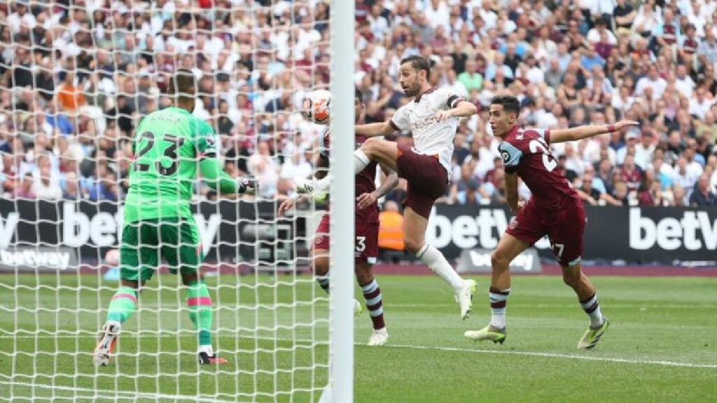 প্রথমার্ধে সিটির ফরোয়ার্ডরা গোল মিসের প্রদর্শনী করছিলেন। ম্যাচে সিটির রক্ষণের ভুল কাজে লাগিয়ে প্রথম গোলটা পায় ওয়েস্টহ্যাম। ৩৬ মিনিটে জেমসের ওয়ার্ডের গোলে এগিয়ে যায় ওয়েস্টহ্যাম। ম্যাচের ৪২ মিনিটে হালান্ড সহজ সুযোগ নষ্ট করলে ১-০ গোলে পিছিয়ে থেকেই বিরতিতে যায় পেপ গার্দিওয়ালার দল।