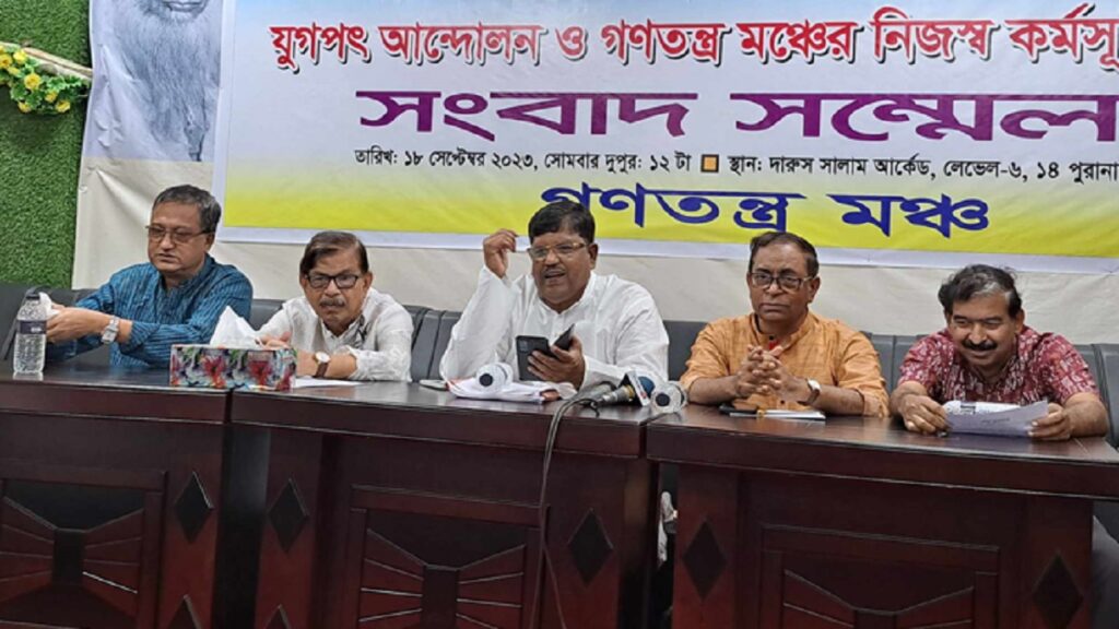 নির্দলীয় সরকারের অধীনে নির্বাচনের একদফা দাবিতে রাজধানীতে সমাবেশ ও পদযাত্রা কর্মসূচী ঘোষণা করেছে গণতন্ত্র মঞ্চ। সোমবার (১৮ সেপ্টেম্বর) দুপুরে নগরীর পুরানা পল্টনে এ আন্দোলন কর্মসূচী ঘোষণা করা হয়।