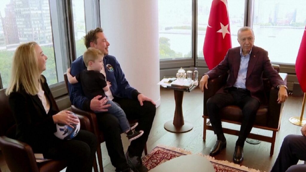 জাতিসংঘের সাধারণ পরিষদের সম্মেলনে যোগ দিতে যুক্তরাষ্ট্রের নিউইয়র্কে রয়েছেন এরদোগান। সাইডলাইনে ম্যানহাটানের সুউচ্চ ভবন টার্কিশ হাউসে সাক্ষাৎ হয় মাস্কের সাথে। টেসলা প্রধানের সাথে ছিল তার শিশু সন্তান।